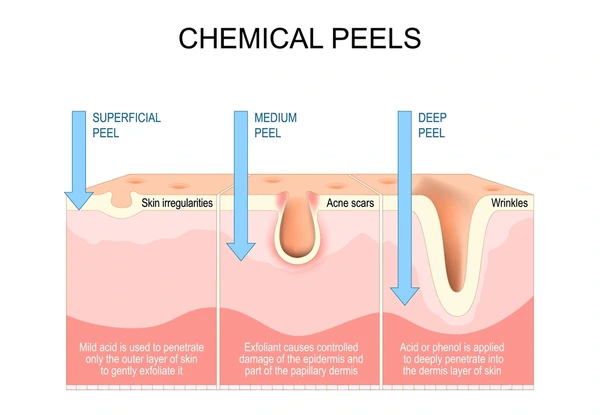 Medium peels (often with TCA or stronger blends) penetrate deeper to improve moderate wrinkles, acne scars, and stubborn pigmentation, usually requiring a few days of recovery.